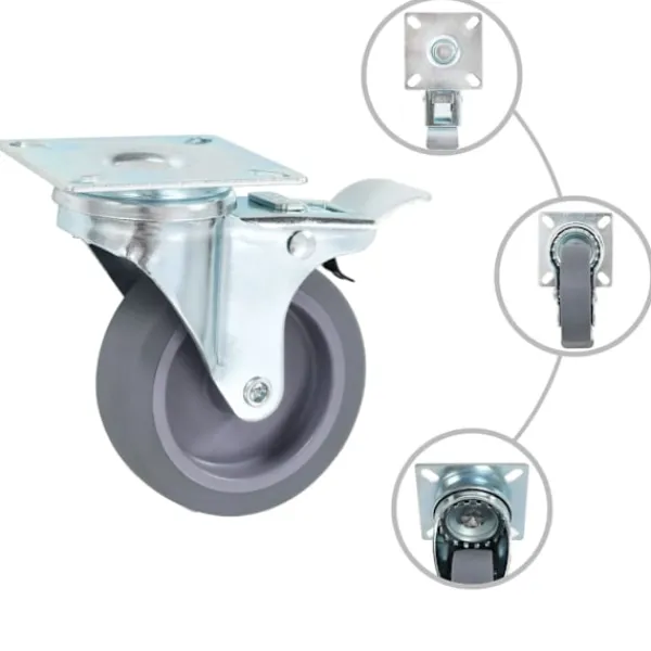 Den här uppsättningen om 12 länkhjul, hälften med bromsar blir ett bra tillbehör för mindre utrustning och möbler såsom arbetsbänkar, vagnar, soffbord, växtställ, bokhyllor, kundvagnar med mera. Hjulen är tillverkade i TPR (termoplastiskt gummi) som kännetecknas av sitt goda stötdämpande vibrationsmotstånd, som gör dem smidiga och tysta. Dessutom skyddar hjulens mjuka yta ditt golv från repor. Ramen i zinkbelagt järn är högst rostbeständig och bidrar därmed till hjulens stadighet. Dessa hjul är utrustade med bromsar för flexibel kontroll. Varje hjul har en maximal lastkapacitet på 45 kg. Vid leverans ingår 12 länkhjul, hälften med bromsar.