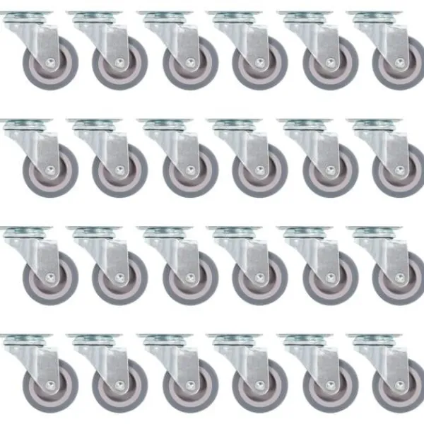 Den här uppsättningen om 144 länkhjul blir ett bra tillbehör för mindre utrustning och möbler såsom arbetsbänkar, vagnar, soffbord, växtställ, bokhyllor, kundvagnar med mera. Länkhjulen är tillverkade i TPR (termoplastisk gummi) som kännetecknas av sitt goda stötdämpande vibrationsmotstånd, som gör dem smidiga och tysta. Dessutom skyddar hjulens mjuka yta ditt golv från repor. Ramen i zinkbelagt järn är högst rostbeständig och bidrar därmed till hjulens stadighet. Varje länkhjul har en maximal lastkapacitet på 35 kg. Vid leverans ingår 144 länkhjul.