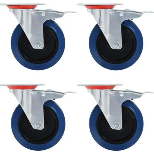 Den här uppsättningen om 4 länkhjul med dubbla bromsar blir ett bra tillbehör för mindre utrustning och möbler såsom arbetsbänkar, vagnar, soffbord, växtställ, bokhyllor, kundvagnar med mera. Hjulen är tillverkade i gummi som kännetecknas av sitt goda stötdämpande vibrationsmotstånd, som gör dem smidiga och tysta. Dessutom skyddar hjulens mjuka yta ditt golv från repor. Ramen i zinkbelagt järn är högst rostbeständig och bidrar därmed till hjulens stadighet. Hjulen är utrustade med dubbla bromsar för flexibel kontroll. Varje länkhjul har en maximal lastkapacitet på 120 kg. Vid leverans ingår 4 länkhjul med dubbla bromsar.