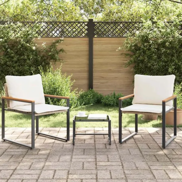 Detta moderna utemöbelset är för dig som vill ha stil och komfort på sin terrass eller i trädgården. Med sina rena linjer och minimalistiska design är det en perfekt mittpunkt för avkoppling, vare sig du har gäster eller bara vill njuta av solen.