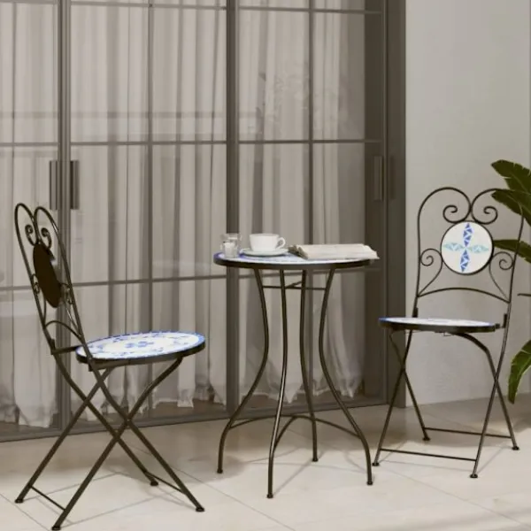 - Mosaikdesign: Balkongsetet hjälper till att skapa en medelhavsatmosfär i din inomhus- eller utomhusmiljö med mosaikdesignen.