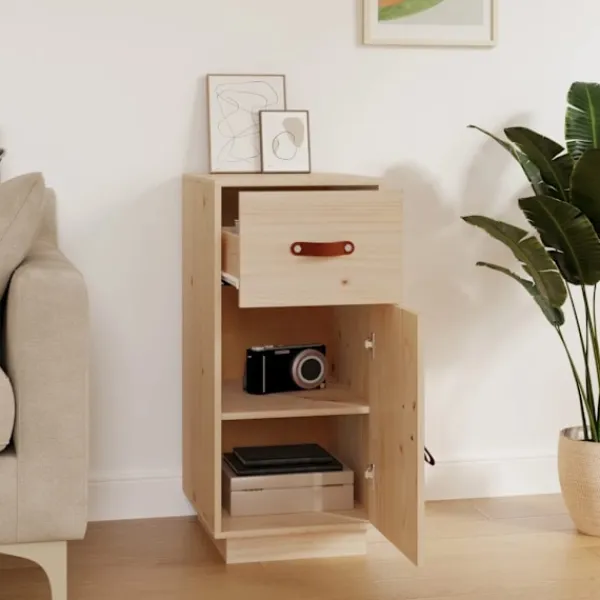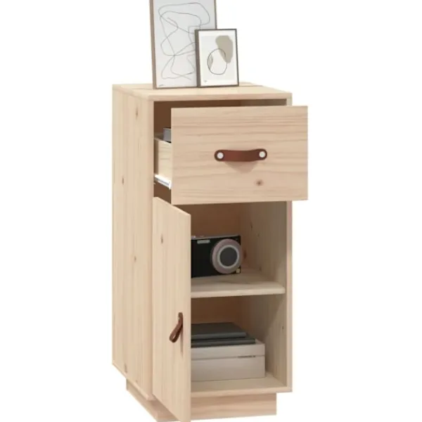 Denna klassiska skänk i trä är ett perfekt komplement till ditt sovrum, vardagsrum eller kontor och gör ett bestående intryck! Robust material: Massivt furuträ är ett vackert naturmaterial. Furuträ har raka fibrer, och knutarna ger materialet sin signatur, rustikt utseende.Gott om förvaring: Denna byrå har 2 fack och en låda, med gott om lagringsutrymme för att hålla dina tidskrifter, böcker, DVD-skivor och multimediaenheter välorganiserade och inom räckhåll.Visningsfunktion: Den robusta toppen av detta sidoskåp är en perfekt plats för att visa dina favorit dekorativa föremål, fotoramar och krukväxter. Varning:För att förhindra att den välter måste denna produkt användas med den medföljande monteringsanordningen för vägg Observera:Varje produkt levereras med en monteringsmanual i lådan för enkel montering.