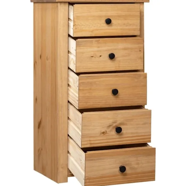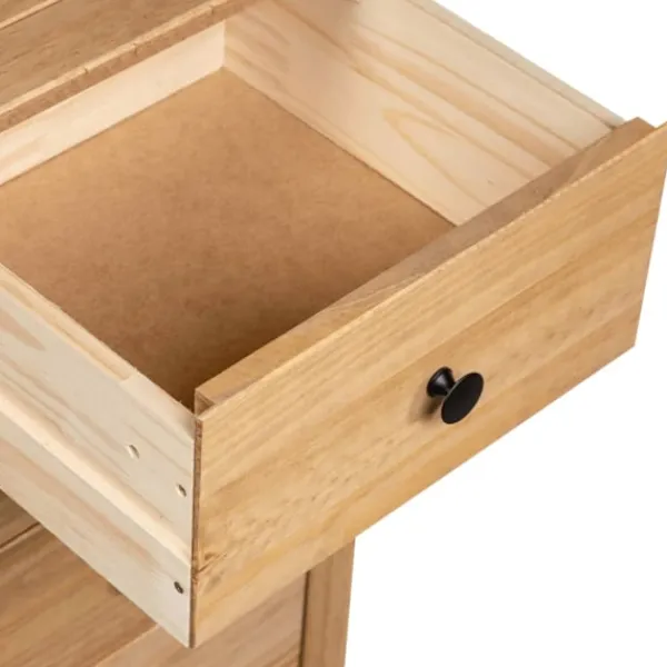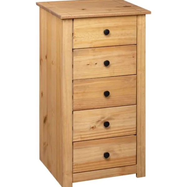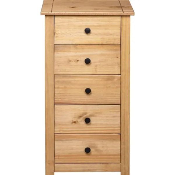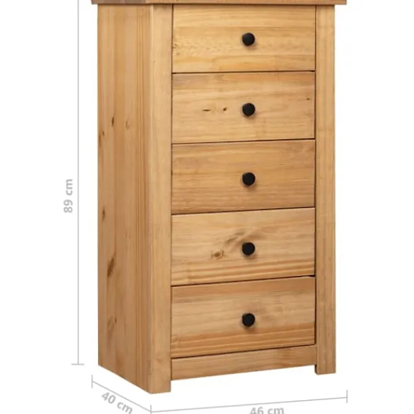 Få ett vackert inslag i ditt sovrum, vardagsrum eller kontor med vår byrå i massiv furu! Den kan också användas som telefonbord eller stå bredvid din soffa! Denna Panama-byrå är tillverkad i massiv furu och är ytterst hållbar och stadig. Den erbjuder stort förvaringsutrymme med 5 lådor. Den robusta bordsskivan är perfekt för att visa upp dekorativa föremål, fotoramar eller krukväxter. Den kan enkelt torkas av med en torr trasa. Telefonbordet är enkelt att montera.