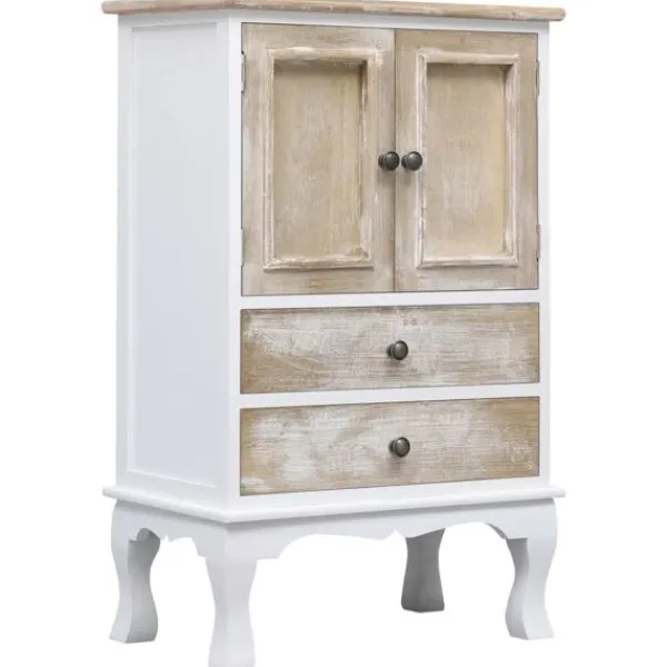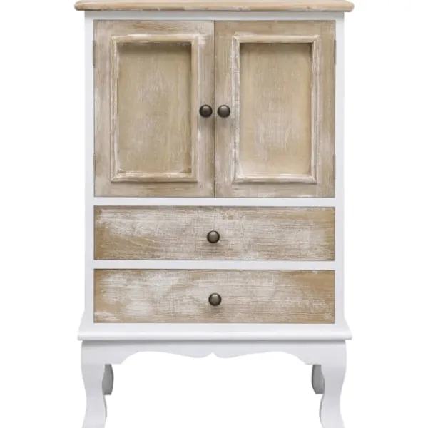 Denna snygga och praktiska träbyrå blir ett perfekt komplement i ditt hem! Eftersom den är tillverkad i kvalitativ paulowniaträ, poppelträ och MDF är denna byrå stadig och hållbar. Den består av 2 lådor och 2 luckor med gott om plats för dina olika föremål, såsom nycklar, papper, böcker, tidningar eller andra mindre föremål. Ta din inredning till nästa nivå med vår moderna byrå!