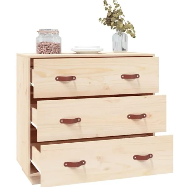 Skänken är ett bra och praktiskt komplement till ditt rum. Massivt furuträ: Detta sidoskåp är tillverkat av massivt furuträ. Massivt furu är ett vackert naturmaterial. Furuträ har raka fibrer, och knutarna ger materialet sin signatur, rustikt utseende.Gott om förvaringsutrymme: Skåpet har 3 rymliga lådor, med gott om lagringsutrymme för förvaring av knick-knacks och håller dina tidskrifter, böcker, DVD-skivor och multimediaenheter välorganiserade.Robust ovansida: Den robusta ovansidan är ideal för att visa dekorativa föremål, fotoramar eller krukväxter på. Varning:För att förhindra att den välter måste denna produkt användas med den medföljande monteringsanordningen för vägg Observera:Varje produkt levereras med en monteringsmanual i lådan för enkel montering.
