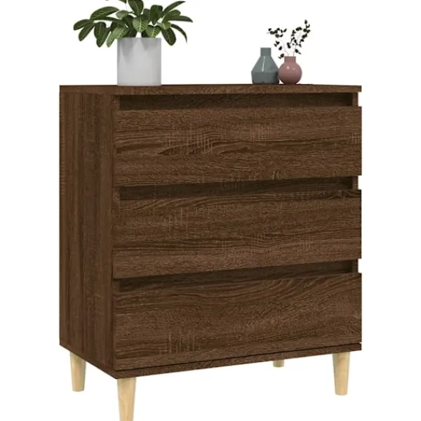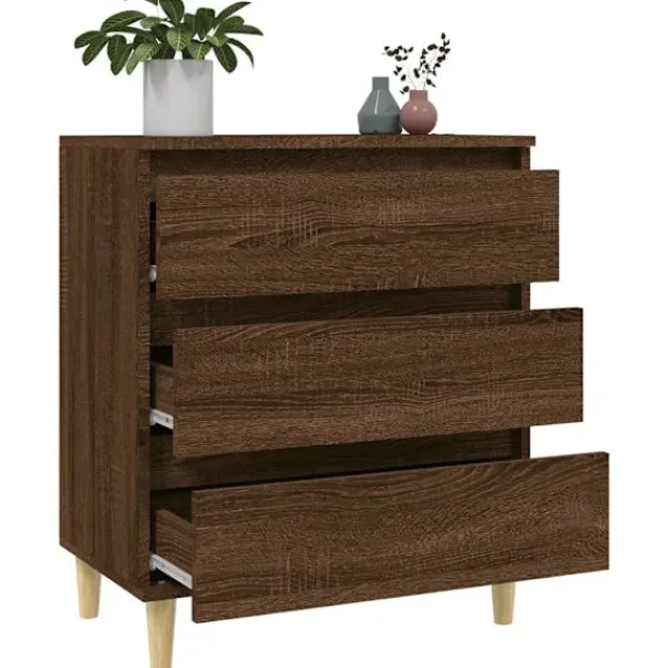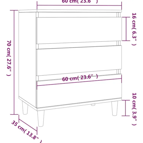 Denna stiliga och praktiska skänk är tänkt att uppfylla dina olika krav och blir ett perfekt tillskott i ditt rum. Hållbart material: Det konstruerade träet är av exceptionell kvalitet med slät yta och är också starkt, stabilt och fuktbeständigt.Gott om förvaring: Byrån har 3 lådor, med gott om förvaringsutrymme för att hålla dina olika saker välorganiserade och inom räckhåll. Robust ovansida: Du kan också placera dina favoritfoton, dekorationer eller blommor ovanpå skänken för att berika ditt rum.Träben: Träbenen ger möbeln ett naturligt och behagligt utseende samtidigt som stabiliteten säkerställs. Den smälter in med vilken inredning som helst. Varning:För att förhindra att den välter måste denna produkt användas med den medföljande monteringsanordningen för vägg Observera:Varje produkt levereras med en monteringsmanual i lådan för enkel montering.