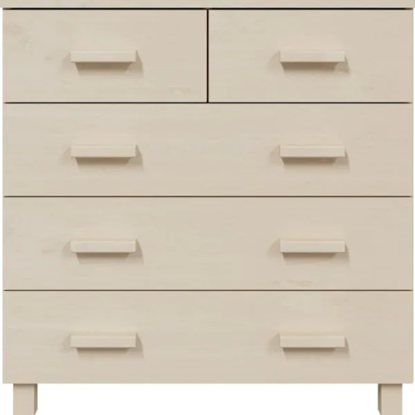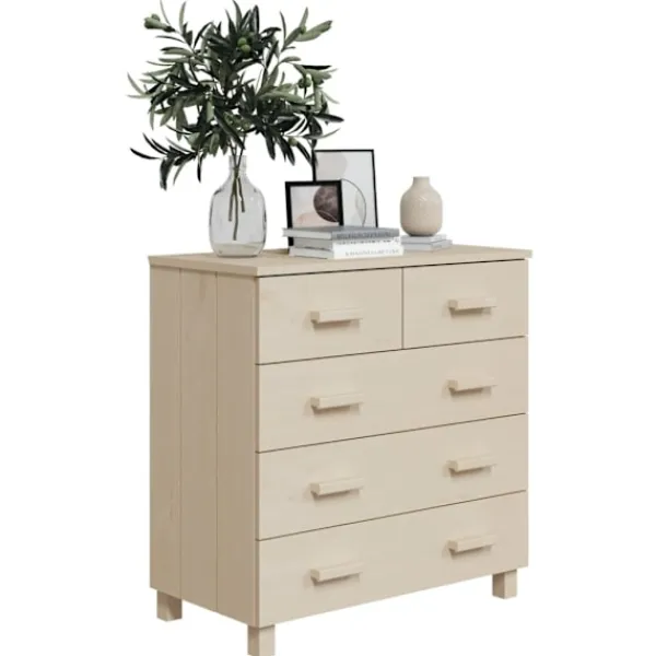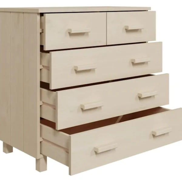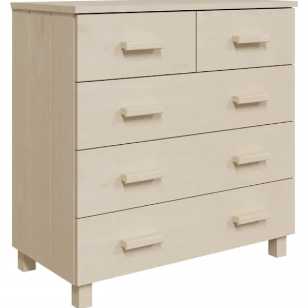 Denna skänk blir ett dekorativt och praktiskt komplement i din inredning. Skåpet är tillverkat i massivt furuträ, vilket gör det stabilt och robust. Skåpet har 5 lådor med gott om förvaringsutrymme för att hålla dagliga väsentligheter organiserade och inom räckhåll. Dessutom är den robusta bordsskivan perfekt för att visa upp dekorativa föremål, fotoramar och krukväxter.