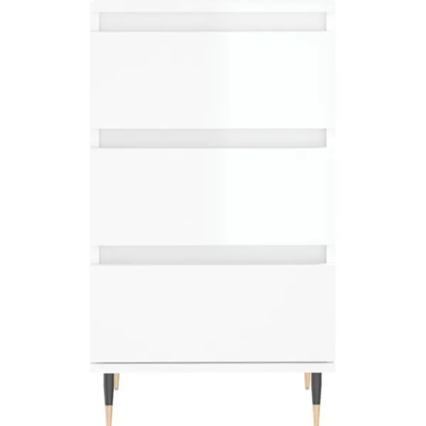 Denna trendiga skänk med ett tidlöst utseende kan bli ett perfekt tillägg till din heminredning. Hållbart material: Det konstruerade träet är av exceptionell kvalitet med slät yta och är också starkt, stabilt och fuktbeständigt.Gott om förvaring: Byrån har 3 lådor, med gott om förvaringsutrymme för att hålla dina saker välorganiserade och inom räckhåll.Visningsfunktion: Den robusta ovansidan är perfekt för krukväxter, inramade foton och andra dekorativa föremål.Metallben: Metallbenen utstrålar en modern och lugn charm i din inredning samtidigt som du garanteras stabilitet. Varning:För att förhindra att den välter måste denna produkt användas tillsammans med det medföljande väggfästet.