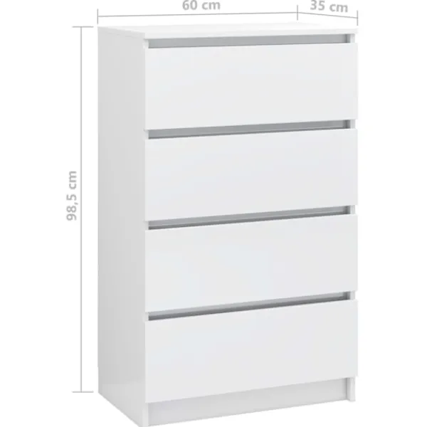 Denna skänk med minimalistisk design blir ett såväl praktiskt som högst dekorativt tillskott i ditt hem. Byrån har 4 lådor med gott om förvaringsutrymme för böcker, multimediaapparater och andra föremål. Den robusta ovansidan är ideal för att visa dekorativa föremål, fotoramar eller krukväxter på. Den kan även användas som avlastningsbord, skänk, med mera. Tack vare dess högkvalitativa konstruerade trämaterial är byrån mycket hållbar. Byrån är enkel att rengöra med en fuktig trasa.