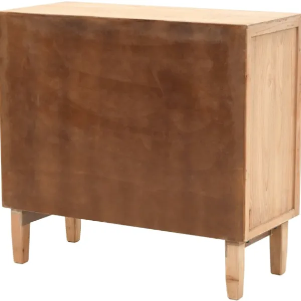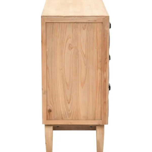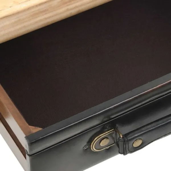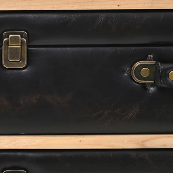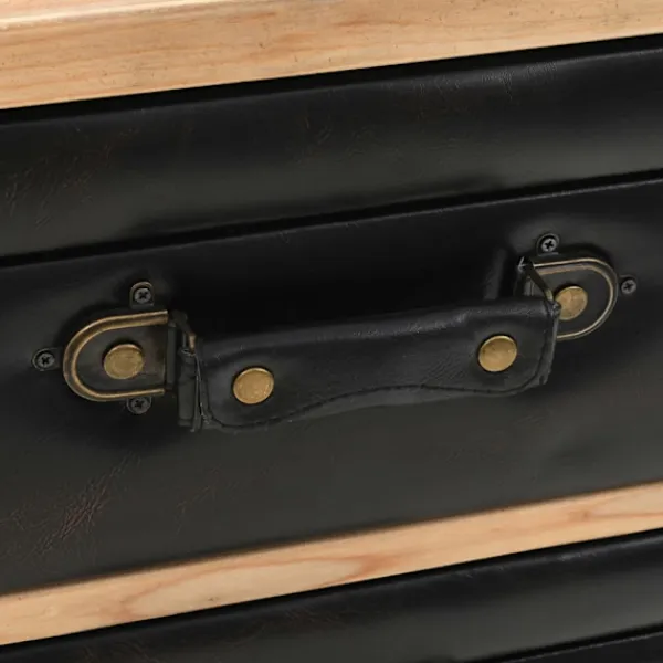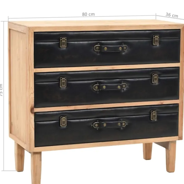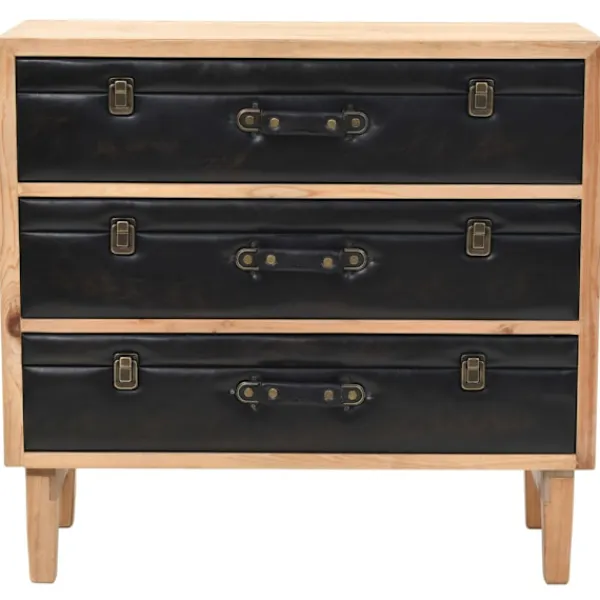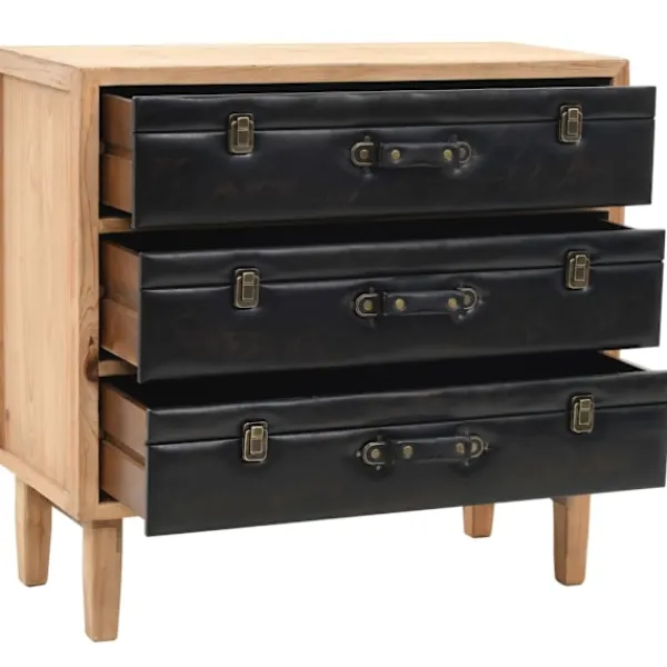 Denna byrå i trä med retro stil med lådfronter designade som en resväska blir ett dekorativt tillägg i ditt sovrum eller vardagsrum. Denna högst stabila och hållbara byrå är tillverkad i massivt granträ. Den robusta ovansidan är en perfekt plats att ställa fruktkorgar, vaser eller andra dekorativa föremål på. Lådorna ger gott om utrymme för att hålla dina olika föremål prydligt organiserade. Den unika designen på lådfronterna bidrar till byråns vintage stil. Monteringen är enkel.