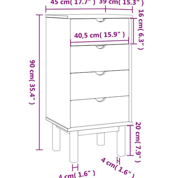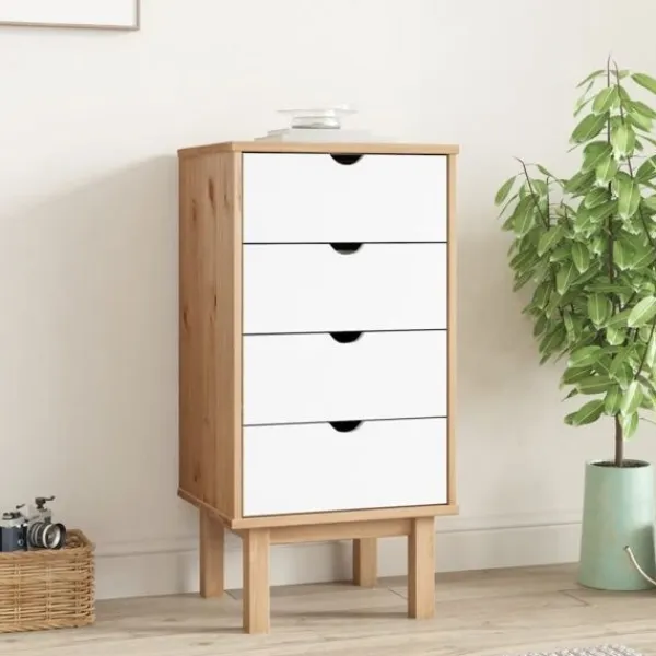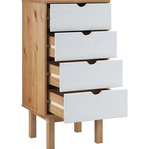 Denna klassiska byrå i trä är ett perfekt val om du vill lägga till en skandinavisk stil till din nuvarande heminredning. Massivt furuträ: Massivt furuträ är ett vackert naturmaterial. Furuträ har raka fibrer, och knutarna ger materialet sin rustika utstrålning.Stabil ram: Träramen säkerställer robusthet och stabilitet.Rymligt förvaringsutrymme: Byrån har fyra lådor. De rymliga lådorna håller dina saker organiserade.Robust ovansida: Dess robusta ovansida är perfekt för att placera krukväxter, inramade foton och andra dekorativa föremål. VARNING:För att förhindra att den välter måste denna produkt användas med den medföljande monteringsanordningen för vägg Observera:Varje produkt levereras med en monteringsmanual i lådan för enkel montering.