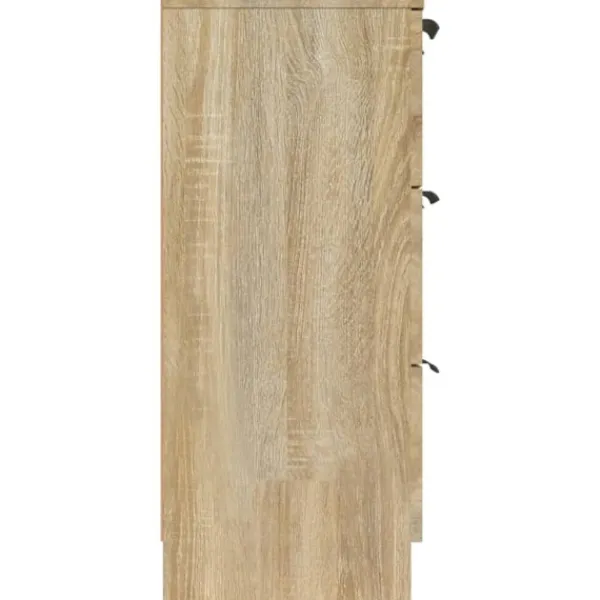 Denna klassiska skänk med ett tidlöst utseende kan bli ett perfekt tillägg till din lounge, matsal, korridor etc. Praktiskt material: Det konstruerade träet är av exceptionell kvalitet med slät yta och har också styrka, stabilitet samt motståndskraft mot fukt.Mer förvaringsutrymme: Byrån har 3 lådor, med gott om utrymme för förvaring av kläder, hattar, böcker, dokument, smycken etc.Visningsfunktion: Översidan av denna byrå är utmärkt för att visa dina dekorativa föremål, fotoalbum eller små växter.Lätt att rengöra: Byrån är lätt att rengöra med en fuktig trasa. Varning:För att förhindra att den välter måste denna produkt användas med den medföljande monteringsanordningen för vägg