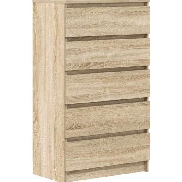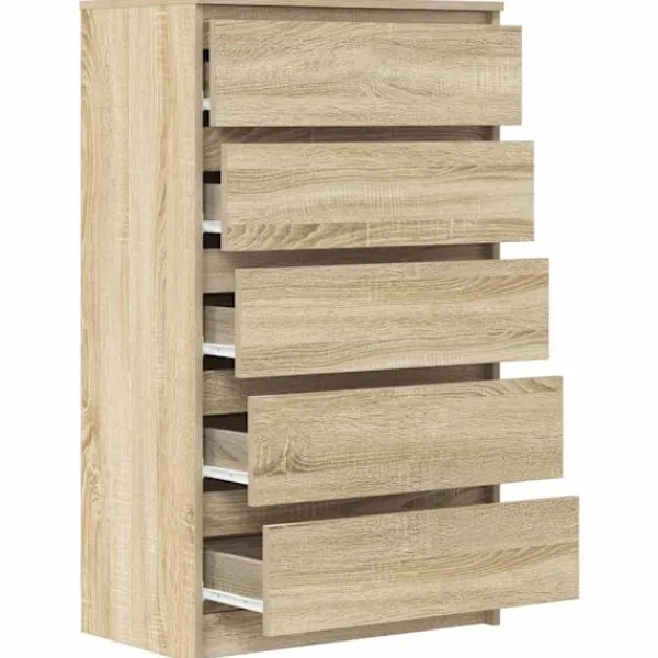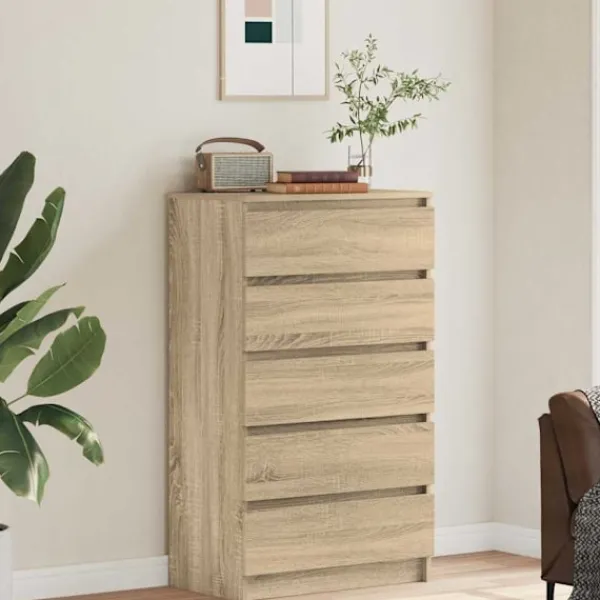 Den här lilla byrån utstrålar en elegant charm och blir en vacker detalj i din inredning. Hållbart material: Det konstruerade träet är av exceptionell kvalitet med slät yta och är också starkt, stabilt och fuktbeständigt.Rymligt förvaringsutrymme: Byrån har 5 lådor. De rymliga lådorna håller dina saker organiserade.Robust ovansida: Dess robusta ovansida är perfekt för att placera krukväxter, inramade foton och andra dekorativa föremål.Lätt att rengöra ytan: Byrån är lätt att rengöra med en fuktig trasa. Varning:För att förhindra att den välter måste denna produkt användas med den medföljande monteringsanordningen för vägg Observera:Varje produkt levereras med en monteringsmanual i lådan för enkel montering.