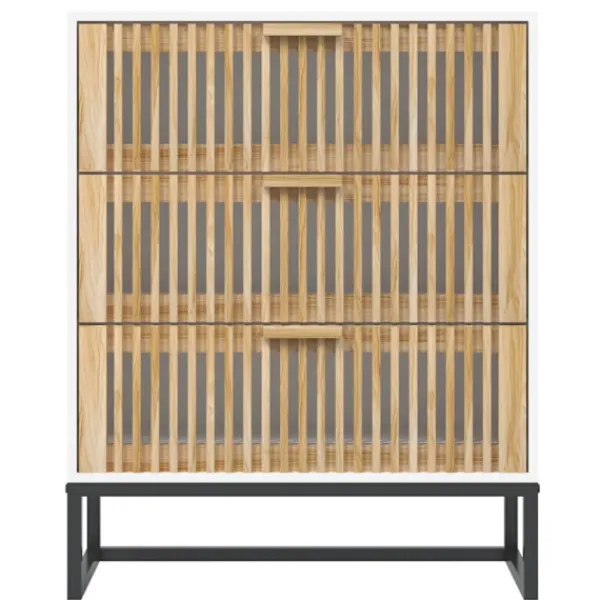 Denna klassiska skänk med ett tidlöst utseende kan bli ett perfekt tillägg i din heminredning. Hållbart material: Det konstruerade träet är av exceptionell kvalitet med slät yta och är också starkt, stabilt och fuktbeständigt.Gott om förvaring: Skåpet har gott om förvaringsutrymme för att hålla dina olika saker välorganiserade och inom räckhåll.Trälåda: Skåpet har trälådor som kan skydda dina saker från damm och smuts.Stabilt järnben: Järnbenet säkerställer robusthet och stabilitet.Robust ovansida: Du kan också placera dina favoritfoton, dekorationer eller blommor ovanpå skänken för att berika ditt rum. Bra att känna till:För att göra monteringen så enkel som möjligt, levereras varje produkt med en bruksanvisning. Varning:För att förhindra att den välter måste denna produkt användas tillsammans med det medföljande väggfästet.