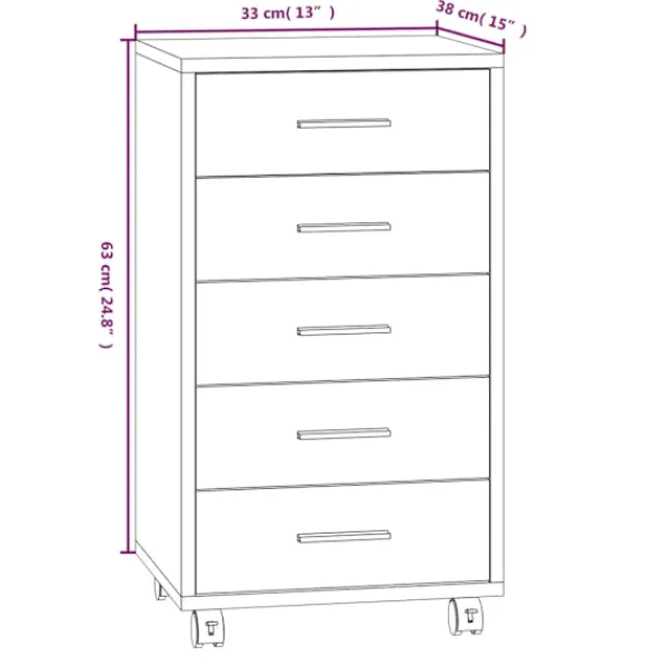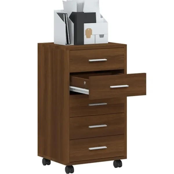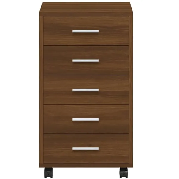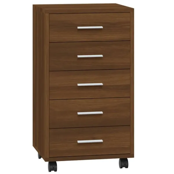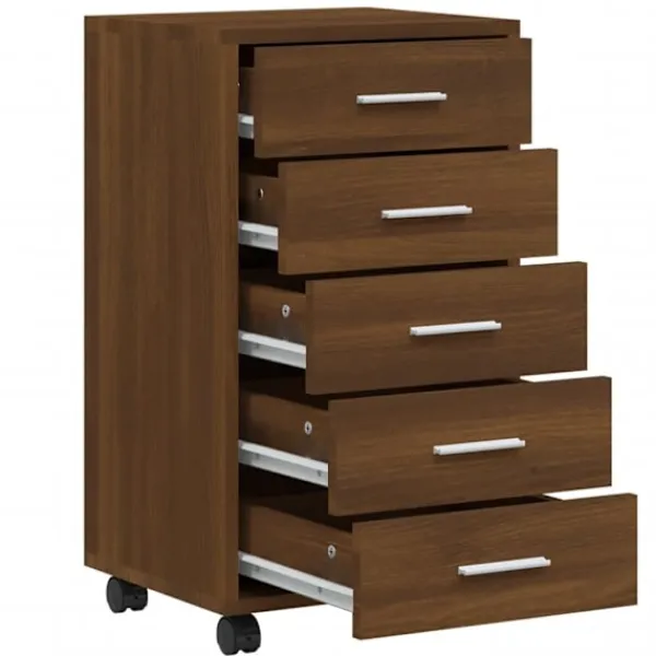 Den här moderna och stilrena hurtsen med hjul blir en perfekt, praktisk förvaringslösning för kontoret eller arbetsrummet. Den passar alla inredningar. Hållbart material: Det konstruerade träet är av exceptionell kvalitet med slät yta och är också starkt, stabilt och fuktbeständigt.Gott om lagringsutrymme: Skåpet har 5 lådor, med gott om lagringsutrymme för dokument, anteckningsböcker, pennor, gem, nycklar och annat kontorsmaterial.Flexibel design: Tack vare sina 4 hjul kan lådan placeras flexibelt och enkelt flyttas runt. Lådskåpet passar perfekt med ett skrivbord och fungerar utmärkt i barnrummet. Observera:Varje produkt levereras med en monteringsmanual i lådan för enkel montering.