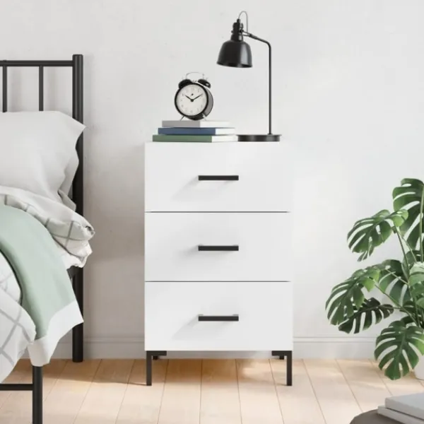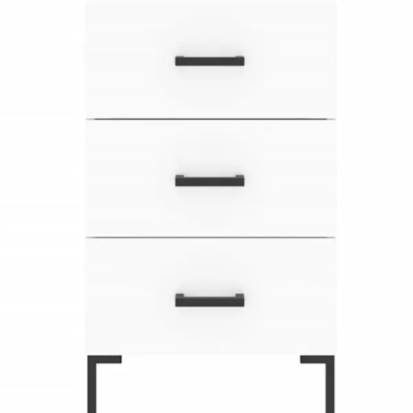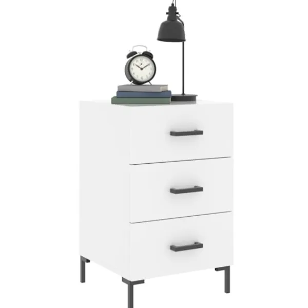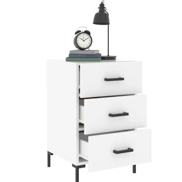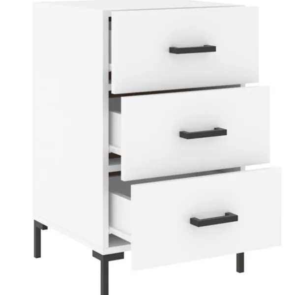 Introducera en modern charm i din inredning med dessa sängbord! Hållbart material: Det konstruerade träet är av exceptionell kvalitet med slät yta och är också starkt, stabilt och fuktbeständigt. Rymlig förvaring: Sängborden har lådor med gott om förvaringsutrymme för att hålla dina böcker, multimediaapparater och andra föremål inom räckhåll.Placeringsfunktion: Du kan också placera dina favoritfoton, dekorationer eller blommor på bordets ovansida för att sätta extra prägel på din inredning. Metallfötter: Metallfötterna ger din inredning ett lugn stil samtidigt som de säkerställer stabilitet. Varning: För att förhindra att den välter måste denna produkt användas tillsammans med det medföljande väggfästet.