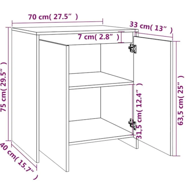 - Mått skänk med dörrar: 70 x 40 x 75 cm (B x D x H)