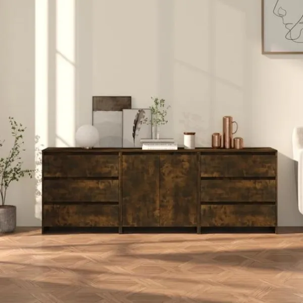 Dessa sidobord blir ett dekorativt såväl som praktiskt komplement till din befintliga inredning. Dessa sidoskåp har gott om förvaringsutrymme för att hålla dina dagliga nödvändigheter organiserade och inom räckhåll. Den stadiga bordsytan är perfekt för dekorativa objekt såsom inramade foton, krukväxter eller en vas. Dessutom är dessa förvaringsskänkar enkla att rengöra med en fuktig trasa.