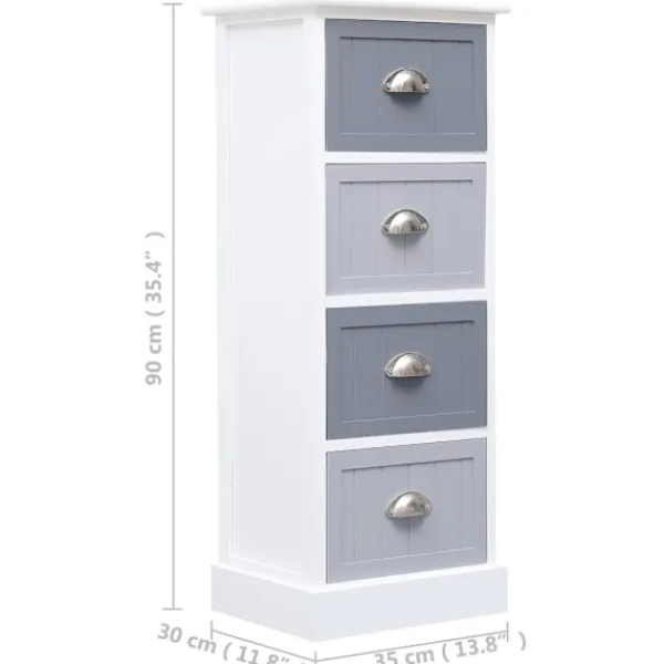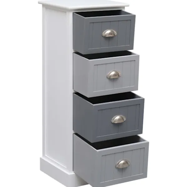 Vårt sidobord i trä blir ett praktiskt och dekorativt tillskott i din inredning. Det kan även användas som telefonbord, sängbord, med mera. Denna byrå är tillverkad av kejsarträ och MDF och är ytterst hållbar och stadig. Den erbjuder gott om förvaringsutrymme med 4 lådor. Dess stadiga bordsskiva är dessutom perfekt för uppvisning av dekorativa föremål, fotoramar eller krukväxter. Den kan enkelt torkas av med en fuktig trasa. Sidoskåpet är enkelt att montera.