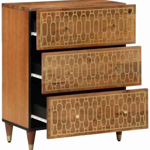 - Massivt mangoträ: Massivt mangoträ är ett starkt, tropiskt träslag som blir robusta möbler. Dess vackra träådringar gör varje möbel något unik. Skåpet är tillverkat av massivt mangoträ och är hållbart och stabilt.