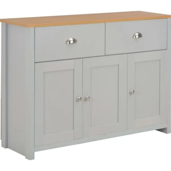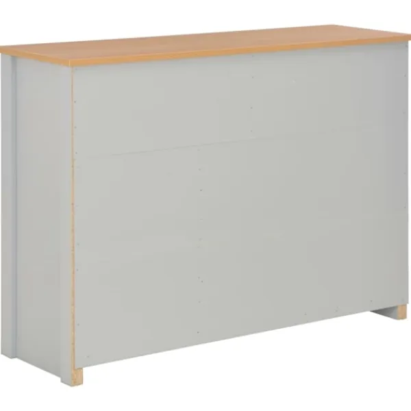 Skänken med förvaringsfack blir en tidlös detalj i din inredning. Skänken är tillverkad i konstruerat trä med melamin och är stadig och stabil. Den robusta ovansidan är perfekt för att placera dekorativa föremål som vaser eller krukväxter. Skänken med 2 lådor och 3 dörrar har gott om förvaringsutrymme för att hålla dina olika föremål snyggt organiserade. Den kan också placeras i korridoren som konsolskåp.
