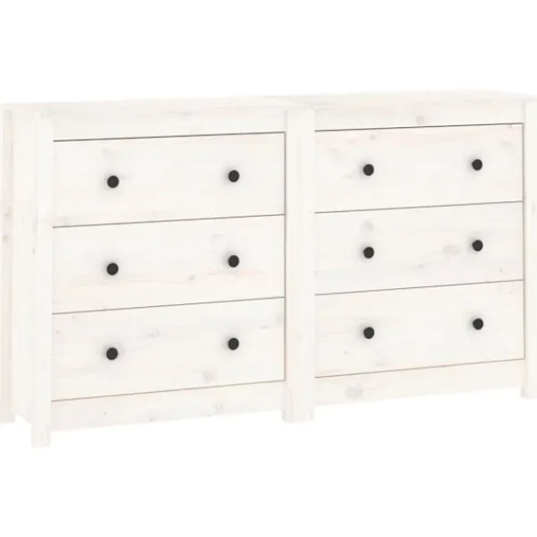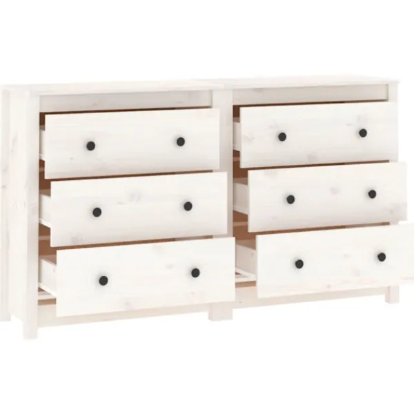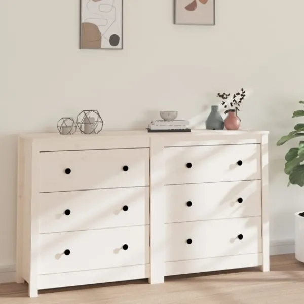 Njut av ett organiserat vardagsrum med denna skänk i trä! Denna praktiska skänk kommer att uppfylla dina olika behov och är perfekt att ha i alla sorters rum. Massivt furuträ: Massivt furuträ är ett vackert naturmaterial. Furuträ har raka fibrer, och knutarna ger materialet sin rustika utstrålning.Gott om förvaring: Skåpet har gott om förvaringsutrymme för att hålla dina olika saker välorganiserade och inom räckhåll.Robust ovansida: Dess robusta ovansida är perfekt för att ställa dekorativa föremål, fotoramar eller krukväxter på. Varning:För att förhindra att den välter måste denna produkt användas med den medföljande monteringsanordningen för vägg Observera:Varje produkt levereras med en monteringsmanual i lådan för enkel montering.Skänken består av två små skänkar.