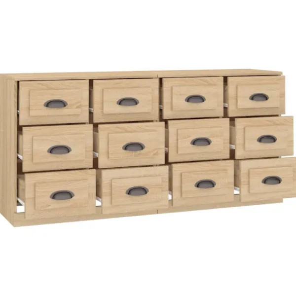 Dessa klassiska skänkar med ett tidlöst utseende kan bli ett perfekt tillägg i din heminredning. Hållbart material: Det konstruerade träet är av exceptionell kvalitet med slät yta och är också starkt, stabilt och fuktbeständigt.Gott om förvaring: Skåpet har gott om förvaringsutrymme för att hålla dina olika saker välorganiserade och inom räckhåll.Robust ovansida: Du kan också placera dina favoritfoton, dekorationer eller blommor ovanpå skänken för att berika ditt rum. Varning:För att förhindra att det välter måste denna produkt användas tillsammans med det medföljande väggfästet.