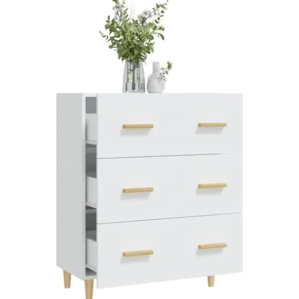 Denna klassiska skänk kommer att bli ett praktiskt tillskott till ditt hem. Praktiskt material: Det konstruerade träet är av exceptionell kvalitet med slät yta och har också styrka, stabilitet samt fuktbeständighet.Gott om förvaring: Skänken har 3 lådor, med gott om förvaringsutrymme för att hålla dina olika saker välorganiserade och inom räckhåll. Ovansidan av skänken är perfekt för att ställa dina prydnadssaker på.Lätt att rengöra: Bokskåpet är lätt att rengöra med en fuktig trasa.Snygg design: Denna skänk har en elegant design, som kommer att tillföra en unik charm till din nuvarande inredning! Varning:För att förhindra att den välter måste denna produkt användas med den medföljande monteringsanordningen för vägg