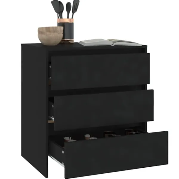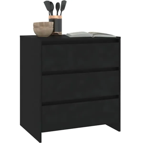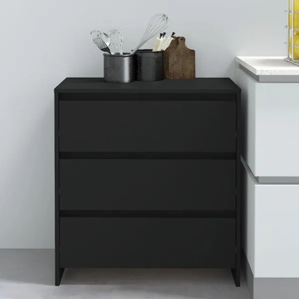 Denna skänk, med en minimalistisk design, blir ett praktiskt och ett exceptionellt dekorativt tillskott till ditt hem. Skänken har 3 lådor och har gott om förvaringsutrymme för att hålla dina dagliga saker organiserade och inom räckhåll. Den robusta ovansidan är perfekt för att ställa dekorativa föremål, fotoramar och krukväxter på. Dessutom är förvaringsskåpet lätt att rengöra med en fuktig trasa.