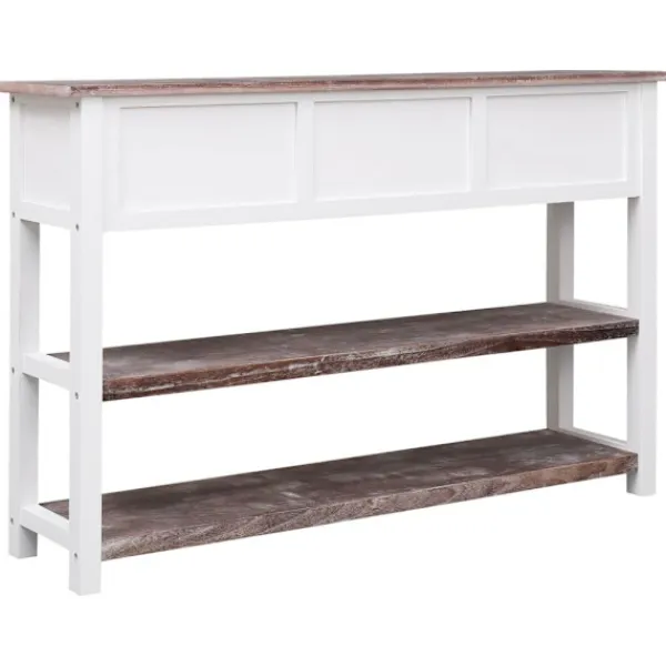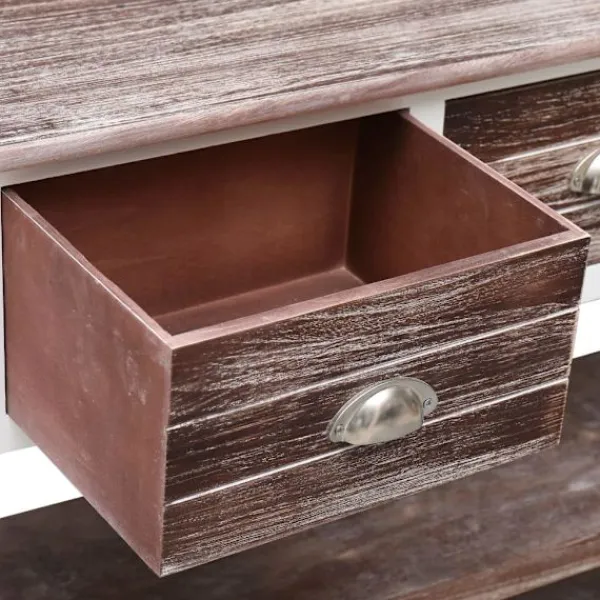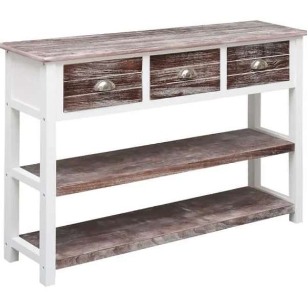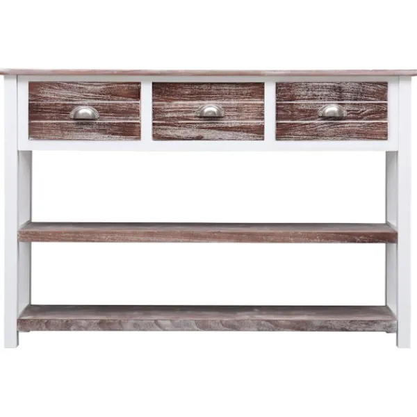 Skänken i trä blir ett tidlöst tillägg i din inredning. Denna skänk är tillverkad av premium poppel och paulownia och är högst stabil och hållbar. Dess stadiga ovansida är en optimal plats att ställa dekorativa föremål som vaser eller krukväxter. Dess 3 lådor och 2 hyllor har gott om plats för att hålla dina olika saker organiserade. Den kan även användas som ett praktiskt avlastningsbord. Skåpet är enkelt att montera. OBS: För att förhindra att den välter måste denna produkt användas med det medföljande väggfästet.