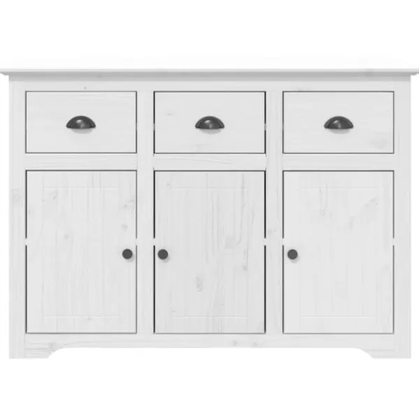 Denna klassiska skänk, med en fransk design, kommer att uppfylla dina krav och blir ett utmärkt komplement till ditt rum. Massivt furuträ: Massivt furuträ är ett vackert naturmaterial. Furuträ har raka fibrer, och knutarna ger materialet sin rustika utstrålning.Gott om förvaringsutrymme: Skåpet har 3 lådor och fack bakom dörrar för att hålla dina olika dagliga väsentligheter välorganiserade och inom räckhåll.Placeringsfunktion: Du kan också placera dina favoritfoton, dekorationer eller blommor på skåpets ovansida för att sätta extra prägel på din inredning.Metallhandtag: Skänkens metallhandtag gör det bekvämt att öppna och stänga lådorna och dörrarna.De gör också skänken mer attraktiv.Charmig fransk stil: Lägg till en inspirerande fransk stil till din inredning! Varning:För att förhindra att den välter måste denna produkt användas tillsammans med det medföljande väggfästet.