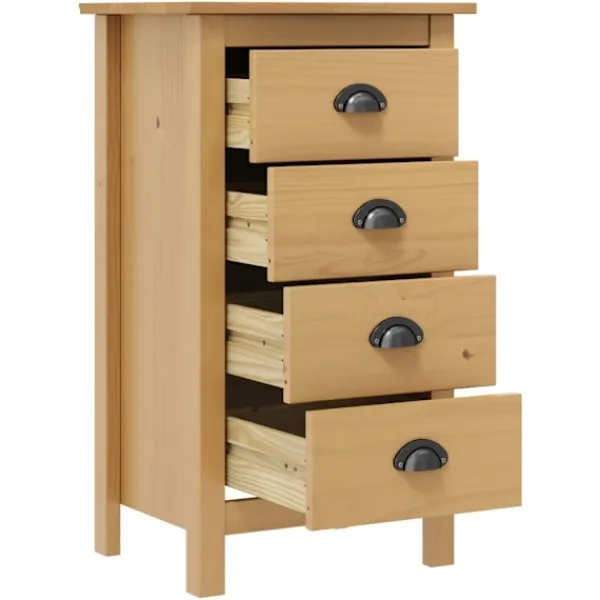 Den moderna skänken är designad för att bli en tidlös detalj i din inredning. Det kompakta skåpet har 4 lådor som är enkla att öppna, vilket ger dig gott om plats att hålla småsaker organiserade och inom räckhåll. Dessutom kan ovansidan användas som en plats att ställa en fruktskål eller visa upp dekorativa föremål såsom fotoramar eller krukväxter. Skänken är också enkel att rengöra med en torr trasa.