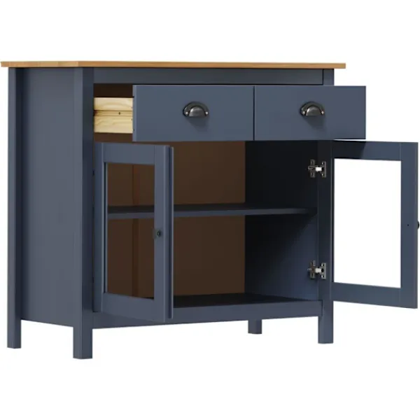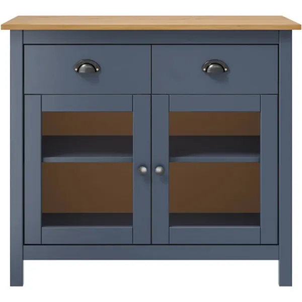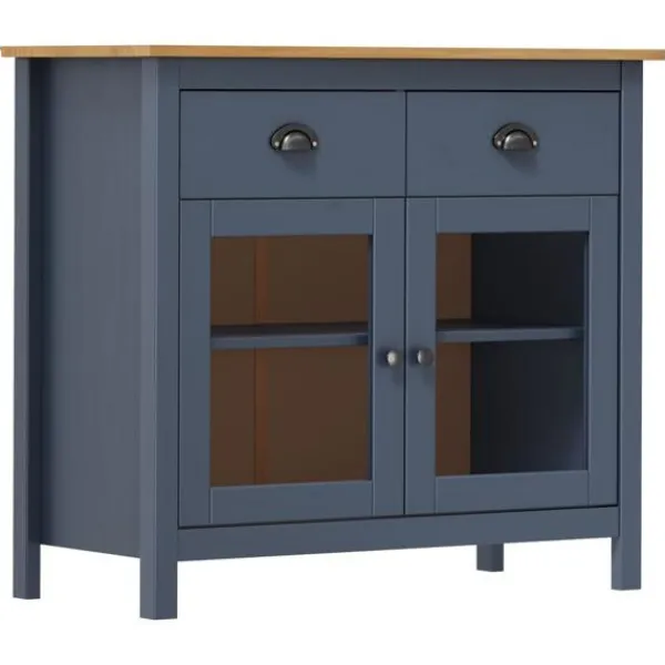 Håll allt organiserat i din inredning med vår eleganta skänk. Skänken är tillverkad i massiv furu som gör den stabil och stadig. Tack vare 2 hyllor och 2 rymliga lådor med skålhandtag erbjuder den gott om förvaringsplats för att hålla dina olika föremål i perfekt ordning och inom räckhåll.