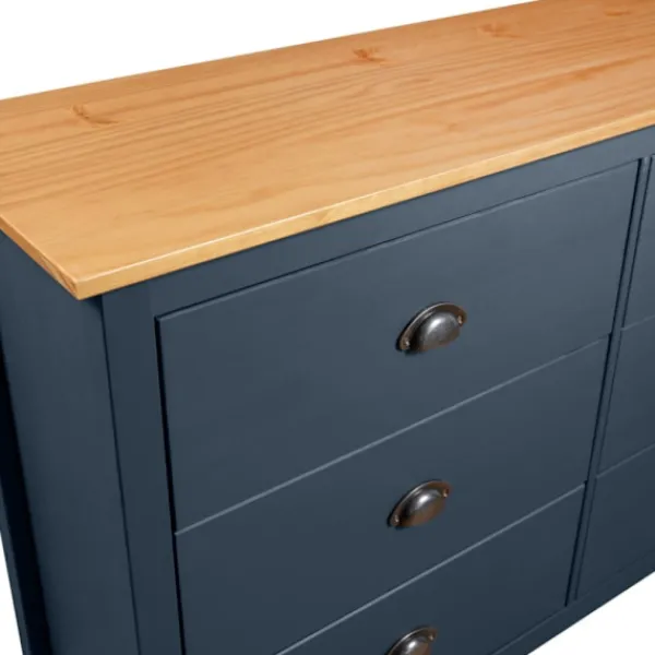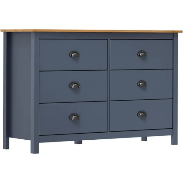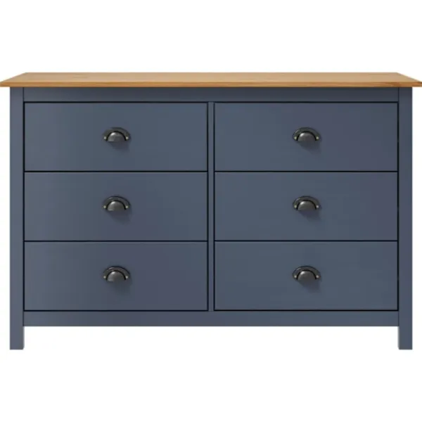 Denna skänk är tillverkad i massiv furu och är mycket stadig. Den har 6 lådor som är enkla att öppna, vilket ger dig gott om plats att hålla saker inom räckhåll. Den stora ovansidan kan användas för att visa upp en fruktskål eller dekorativa saker som fotoramar eller krukväxter.