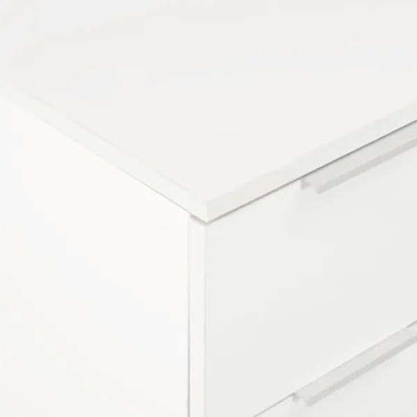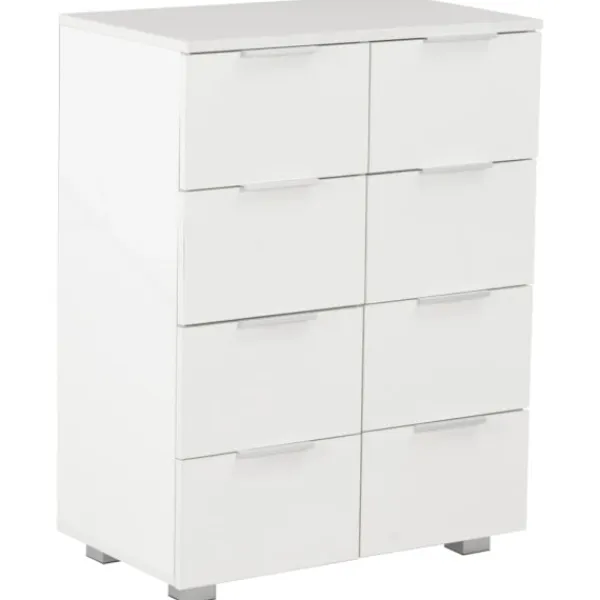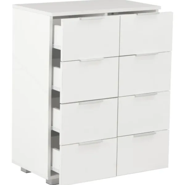 Med sitt praktiska förvaringsutrymme blir skänken ett perfekt komplement i alla rum. Eftersom den är tillverkad i spånskiva med en högglansig finish är byrån vacker och oerhört stadig och stabil. Dessutom är den utrustad med 8 lådor och har gott om plats för dina olika prylar, så du kan hålla ditt rum städat. Detta förvaringsskåp i högglans är enkelt att rengöra.