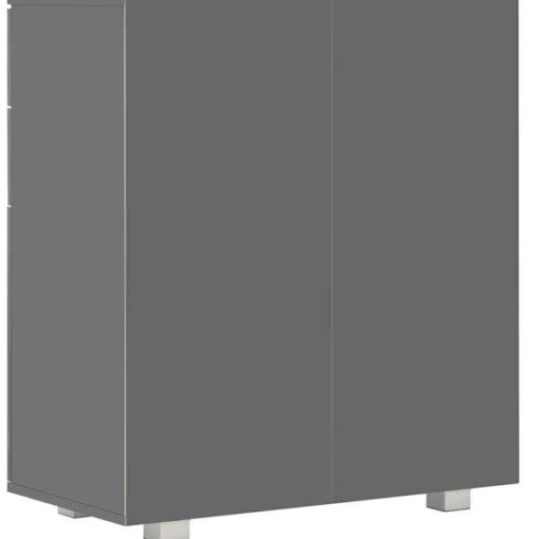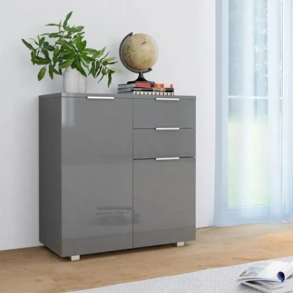 Med sitt praktiska förvaringsutrymme blir skänken ett perfekt komplement i alla rum. Eftersom den är tillverkad i spånskiva med en högglansig finish är byrån vacker och oerhört stadig och stabil. Dessutom är den utrustad med 2 lådor och har gott om plats för dina olika prylar, så att du kan hålla ditt rum städat. Detta förvaringsskåp i högglans är enkelt att rengöra.