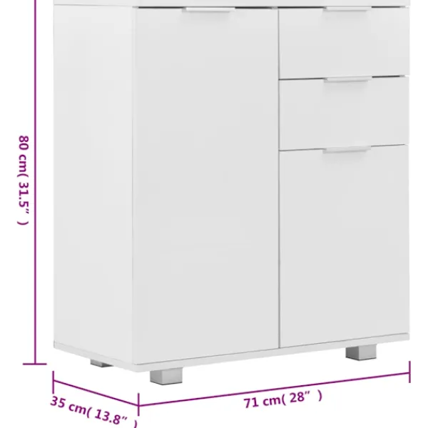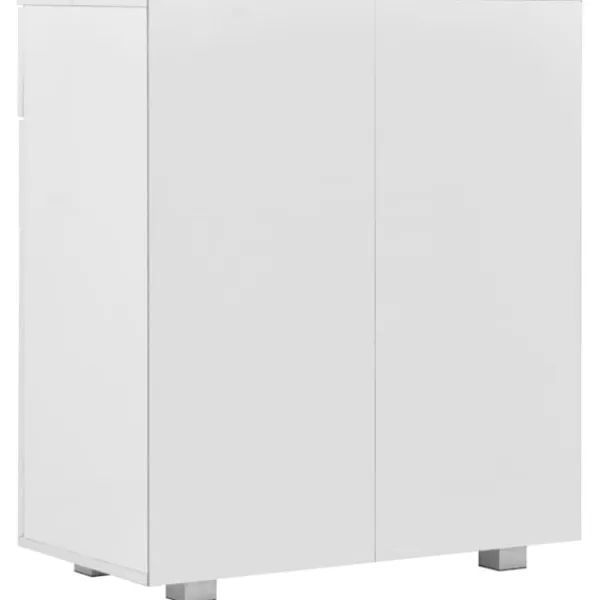 Med sitt praktiska förvaringsutrymme blir skänken ett perfekt komplement i alla rum. Eftersom den är tillverkad i spånskiva med en högglansig finish är byrån vacker och oerhört stadig och stabil. Dessutom är den utrustad med 2 lådor och har gott om plats för dina olika prylar, så att du kan hålla ditt rum städat. Detta förvaringsskåp i högglans är enkelt att rengöra.