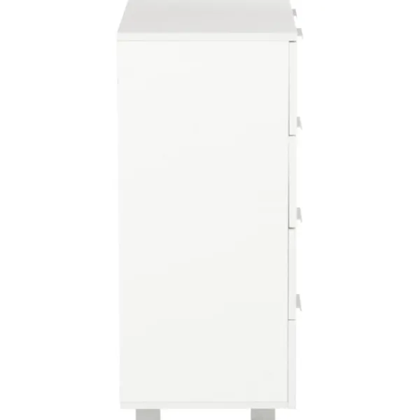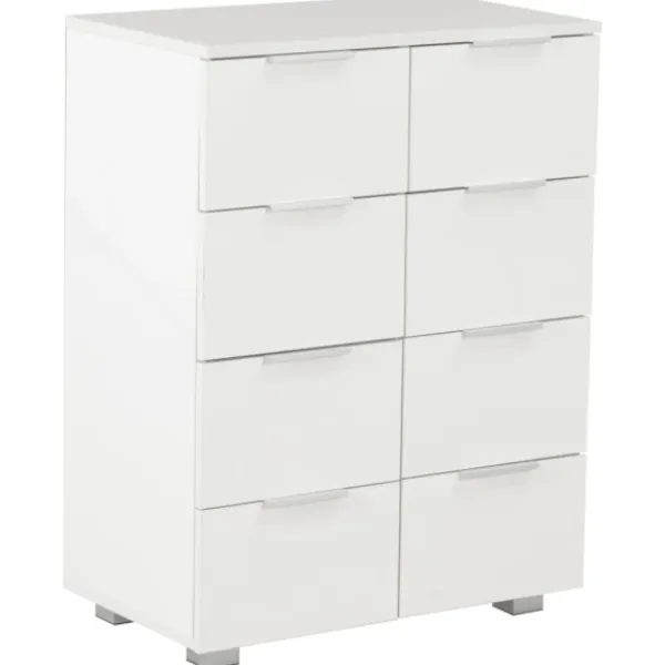 Eftersom den är tillverkad i spånskiva med en högglansig finish är byrån vacker och oerhört stadig och stabil. Dessutom är den utrustad med 8 lådor och har gott om plats för dina olika prylar, så du kan hålla ditt rum städat. Detta förvaringsskåp i högglans är enkelt att rengöra.