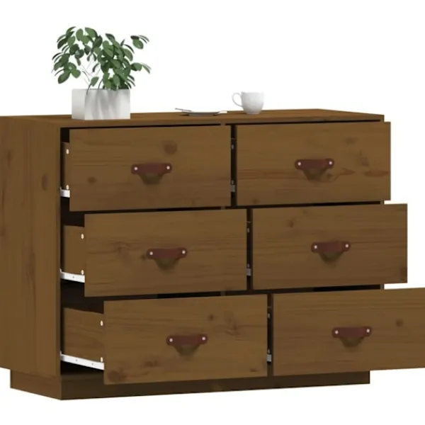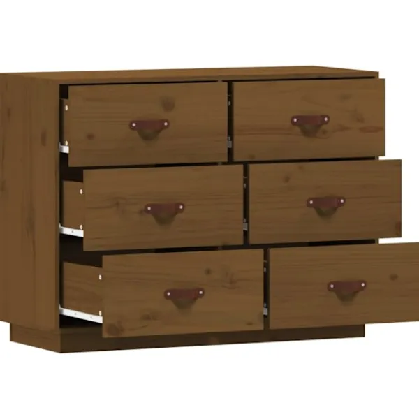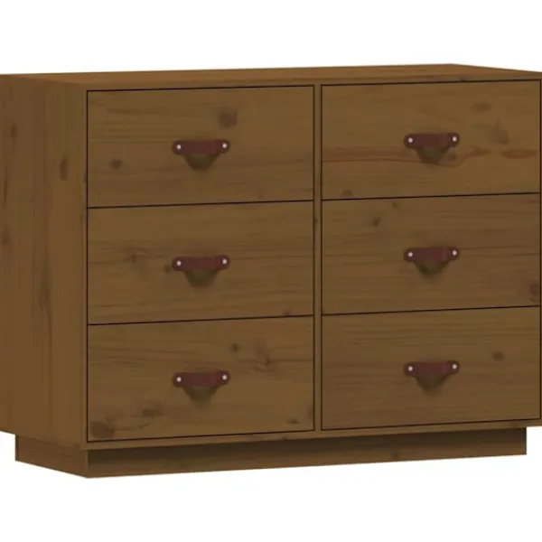Denna trendiga och praktiska byrå uppfyller dina olika krav och blir ett perfekt tillskott i ditt rum. Massivt furuträ: Massivt furuträ är ett vackert naturmaterial. Furuträ har raka fibrer, och knutarna ger materialet sin rustika utstrålning.Stabil ram: Träramen säkerställer robusthet och stabilitet.Gott om förvaringsutrymme: Skänken har 6 lådor med tillräckligt med utrymme för att du ska kunna hålla saker organiserade och inom räckhåll.Robust toppskiva: Toppskivan är perfekt för att visa upp dekorationer, foton och krukväxter. Varning:För att förhindra att den välter måste denna produkt användas med den medföljande monteringsanordningen för vägg Observera:Varje produkt levereras med en monteringsmanual i lådan för enkel montering.