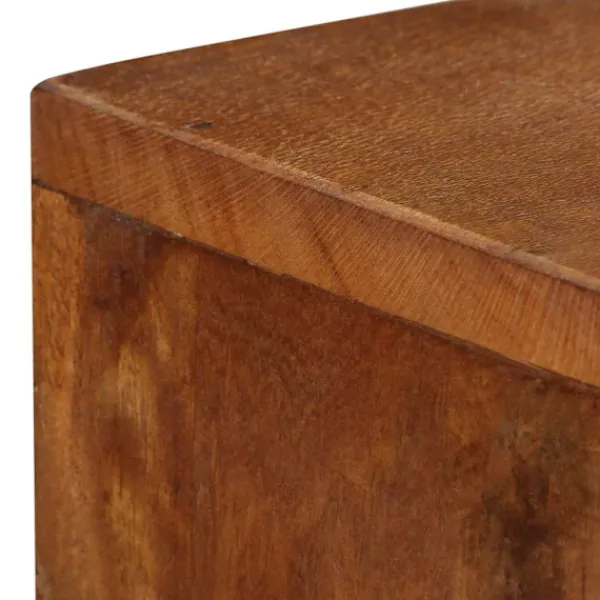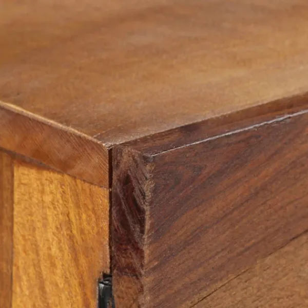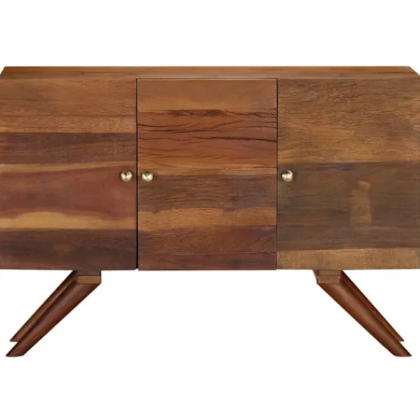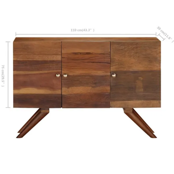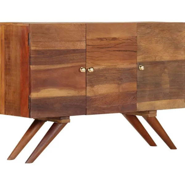 Denna träskänk blir ett dekorativt och praktiskt komplement i din inredning. Skänken är tillverkad i massivt återvunnet trä som har samlats in från reglar, golv och balkar från gamla byggnader som har rivits, och kan bestå av olika typer av trä såsom furu, teak, björk, ek, ceder, mangoträ, akacia, osv. Detta innebär att det återvunna träet behåller egenskaperna från dessa olika träslag. Återvunnet trä är redan åldrat, vittrat och torkat, så det varken krymper eller böjs. De vackra träådringarna gör varje möbel unik och något annorlunda från de andra. Tecken på slitage och synliga träådringar vittnar om träets rika historia och ger skänken ett varmt och autentiskt utseende. Varje steg i processen utförs med största omsorg, vare sig det är polering, målning eller lackering. Skänken är utformad med gott om förvaringsutrymme och håller dina tidskrifter, DVD:er och multimedia-enheter välorganiserade och inom räckhåll. Den är lätt att montera. Viktigt: Färger och fibrer kan variera från produkt till produkt, vilket gör varje skåp unikt. Leveransen är slumpartad, vilket säkerställer varje produkts exklusivitet och individualitet.