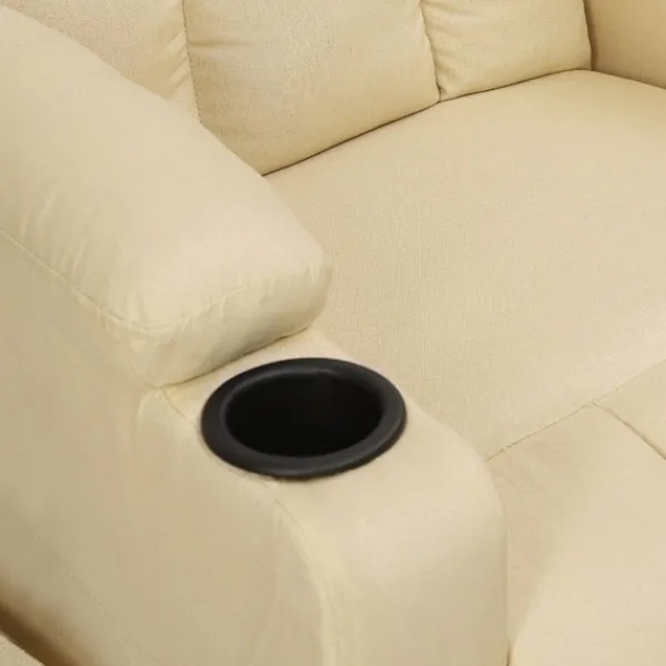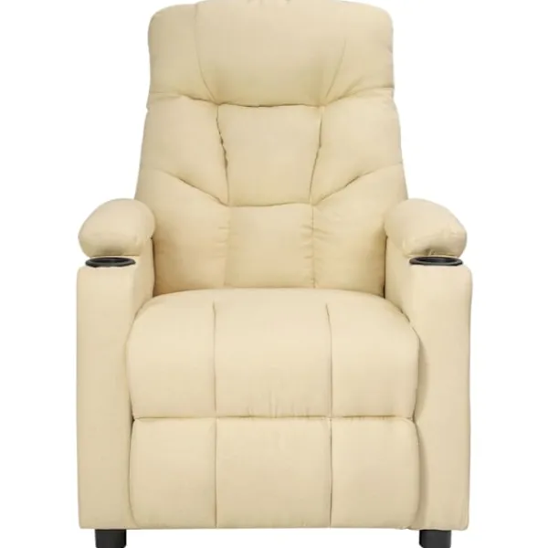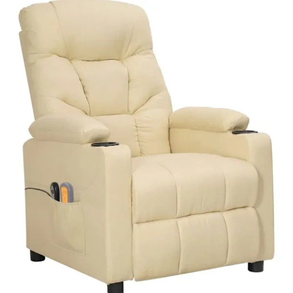 Luta dig tillbaka och koppla av i denna mycket bekväma massagefåtölj! Elektrisk justering : Denna vilofåtölj är utrustad med en elektrisk motor för justering av ryggstöd och fotstöd. Den har 3 justerbara lägen, vilket gör att du enkelt kan justera ryggstödet och fotstödet med den medföljande handkontrollen med två knappar enligt din komfort.Vibration: De 6 massagepunkterna låter dig uppleva en bättre riktad massage. Kontrollen låter dig välja olika massageprogram. Massagefunktionen drivs av USB-kontakten, men den certifierade 5V USB-strömkällan ingår inte.Bekväm sittupplevelse: Det tjockt vadderade sätet, ryggstödet och de breda armstöden täckta i tyg bidrar till en mysig och varm känsla, vilket gör att du känner dig omfamnad när du sitter. Tyget är slitstarkt, andas och har ett enkelt och rent utseende.Massiv och stabil ram: Ramen av trä och metall bidrar till en stark och stabil konstruktion. Denna fällbara fåtölj är bekväm och hållbar.