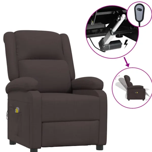 Luta dig tillbaka och koppla av i denna mycket bekväma massagefåtölj! Elektrisk justering : Denna vilofåtölj är utrustad med en elektrisk motor för justering av ryggstöd och fotstöd. Den har 3 justerbara lägen, vilket gör att du enkelt kan justera ryggstödet och fotstödet med den medföljande handkontrollen med två knappar enligt din komfort.Vibration: De 6 massagepunkterna låter dig uppleva en bättre riktad massage. Kontrollen låter dig välja olika massageprogram. Massagefunktionen drivs av USB-kontakten, men den certifierade 5V USB-strömkällan ingår inte.Bekväm sittupplevelse: Det tjockt vadderade sätet, ryggstödet och de breda armstöden täckta i tyg bidrar till en mysig och varm känsla, vilket gör att du känner dig omfamnad när du sitter. Tyget är slitstarkt, andas och har ett enkelt och rent utseende.Massiv och stabil ram: Ramen av trä och metall bidrar till en stark och stabil konstruktion. Denna fällbara fåtölj är bekväm och hållbar.