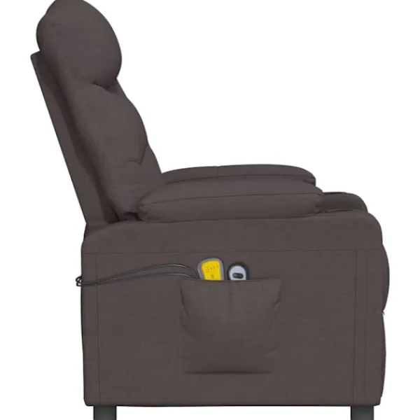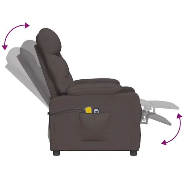 Luta dig tillbaka och koppla av i denna mycket bekväma massagefåtölj! Elektrisk justering : Denna vilofåtölj är utrustad med en elektrisk motor för justering av ryggstöd och fotstöd. Den har 3 justerbara lägen, vilket gör att du enkelt kan justera ryggstödet och fotstödet med den medföljande handkontrollen med två knappar enligt din komfort.Vibration: De 6 massagepunkterna låter dig uppleva en bättre riktad massage. Kontrollen låter dig välja olika massageprogram. Massagefunktionen drivs av USB-kontakten, men den certifierade 5V USB-strömkällan ingår inte.Bekväm sittupplevelse: Det tjockt vadderade sätet, ryggstödet och de breda armstöden täckta i tyg bidrar till en mysig och varm känsla, vilket gör att du känner dig omfamnad när du sitter. Tyget är slitstarkt, andas och har ett enkelt och rent utseende.Massiv och stabil ram: Ramen av trä och metall bidrar till en stark och stabil konstruktion. Denna fällbara fåtölj är bekväm och hållbar.