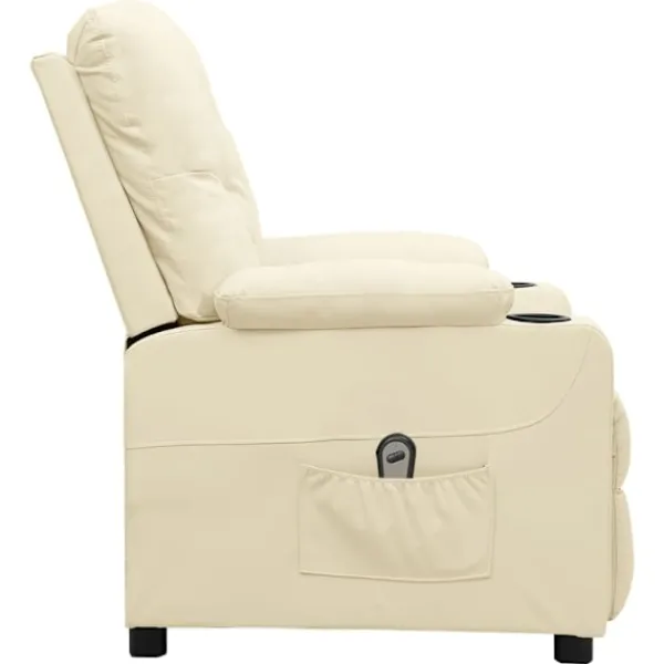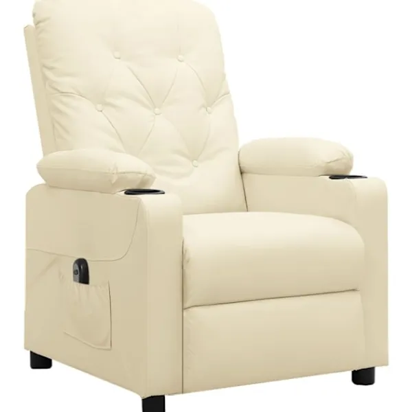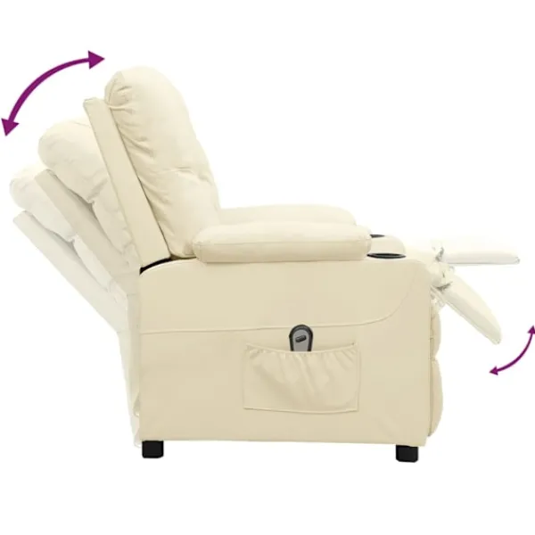 Luta dig tillbaka och koppla av i den här mycket bekväma reclinerfåtölj! Elektrisk justering : Denna vilofåtölj är utrustad med en elektrisk motor för justering av ryggstöd och fotstöd. Den har 3 justerbara lägen, vilket gör att du enkelt kan justera ryggstödet och fotstödet med den medföljande handkontrollen med två knappar enligt din komfort.Bekväm sittupplevelse: Det tjockt vadderade sätet, ryggstödet och de breda armstöden täckta i konstläder ger en mysig och varm känsla, vilket gör att du känner dig omfamnad när du sitter. Konstläder är ett högst slitstarkt material. Den är fläckbeständig, vilket gör den enkel att rengöra med en fuktig trasa. Den släta ytan har också ett lyxigt utseende.Massiv och stabil ram: Ramen av trä och metall bidrar till en stark och stabil konstruktion. Denna fällbara fåtölj är bekväm och hållbar.
