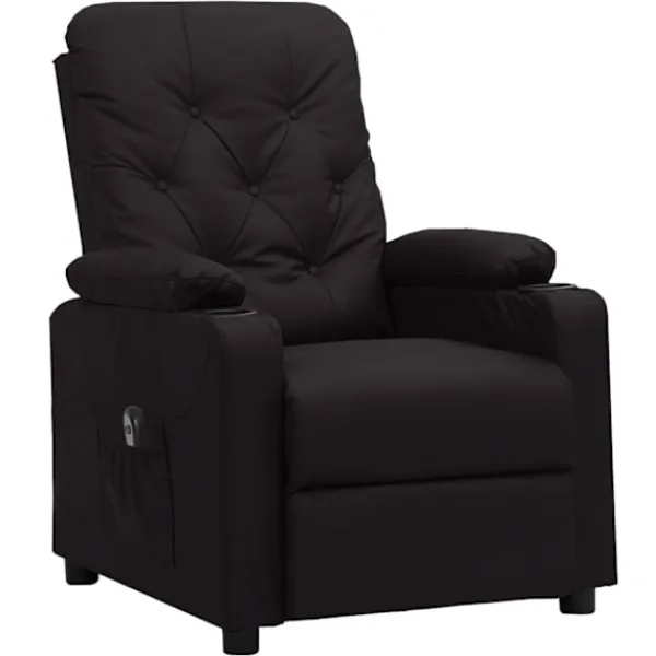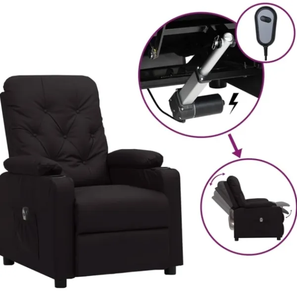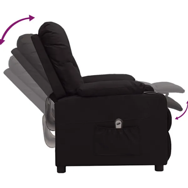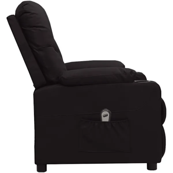 Luta dig tillbaka och koppla av i den här mycket bekväma reclinerfåtölj! Elektrisk justering : Denna vilofåtölj är utrustad med en elektrisk motor för justering av ryggstöd och fotstöd. Den har 3 justerbara lägen, vilket gör att du enkelt kan justera ryggstödet och fotstödet med den medföljande handkontrollen med två knappar enligt din komfort.Bekväm sittupplevelse: Det tjockt vadderade sätet, ryggstödet och de breda armstöden täckta i konstläder ger en mysig och varm känsla, vilket gör att du känner dig omfamnad när du sitter. Konstläder är ett högst slitstarkt material. Den är fläckbeständig, vilket gör den enkel att rengöra med en fuktig trasa. Den släta ytan har också ett lyxigt utseende.Massiv och stabil ram: Ramen av trä och metall bidrar till en stark och stabil konstruktion. Denna fällbara fåtölj är bekväm och hållbar.