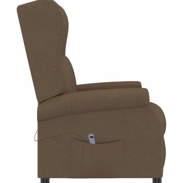 Luta dig tillbaka och koppla av i den här mycket bekväma reclinerfåtölj! Elektrisk justering : Denna vilofåtölj är utrustad med en elektrisk motor för justering av ryggstöd och fotstöd. Den har 3 justerbara lägen, vilket gör att du enkelt kan justera ryggstödet och fotstödet med den medföljande handkontrollen med två knappar enligt din komfort.Bekväm sittupplevelse: Det tjockt vadderade sätet, ryggstödet och de breda armstöden täckta i tyg bidrar till en mysig och varm känsla, vilket gör att du känner dig omfamnad när du sitter. Tyget är slitstarkt, andas och har ett enkelt och rent utseende.Massiv och stabil ram: Ramen av trä och metall bidrar till en stark och stabil konstruktion. Denna fällbara fåtölj är bekväm och hållbar.