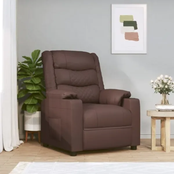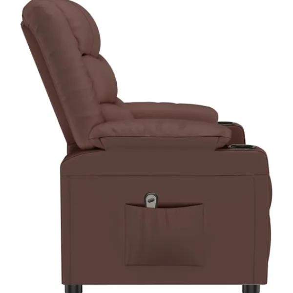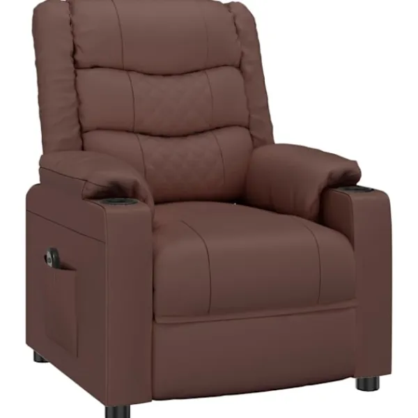 Luta dig tillbaka och koppla av i den här mycket bekväma reclinerfåtölj! Elektrisk justering : Denna vilofåtölj är utrustad med en elektrisk motor för justering av ryggstöd och fotstöd. Den har 3 justerbara lägen, vilket gör att du enkelt kan justera ryggstödet och fotstödet med den medföljande handkontrollen med två knappar enligt din komfort.Bekväm sittupplevelse: Det tjockt vadderade sätet, ryggstödet och de breda armstöden täckta i konstläder ger en mysig och varm känsla, vilket gör att du känner dig omfamnad när du sitter. Konstläder är ett högst slitstarkt material. Den är fläckbeständig, vilket gör den enkel att rengöra med en fuktig trasa. Den släta ytan har också ett lyxigt utseende.Massiv och stabil ram: Ramen av trä och metall bidrar till en stark och stabil konstruktion. Denna fällbara fåtölj är bekväm och hållbar.
