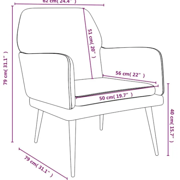 Letar du efter en fåtölj att koppla av efter en tröttsam dag? Denna sköna fåtölj är ett utmärkt val! Mjukt sammet: Sammet är ett mjukt, lyxigt tyg som känns igen på sitt täta, jämnt skurna fiber som är lämpligt att ta en tupplur på. Sammetstyg har en distinkt mjuk känsla, vilket gör det bekvämt att röra vid.Bekväm sittupplevelse: Fåtöljen, med sluttande rygg och djup sits, är perfekt för att slappna av och varva ner. Dessutom är dess tjockt vadderade sits och ryggstöd mycket bekväma.Robust och stabil ram: Fåtöljen stöds av en metallram, vilket gör den robust och stabil. Observera:Varje produkt levereras med en monteringsmanual i lådan för enkel montering.