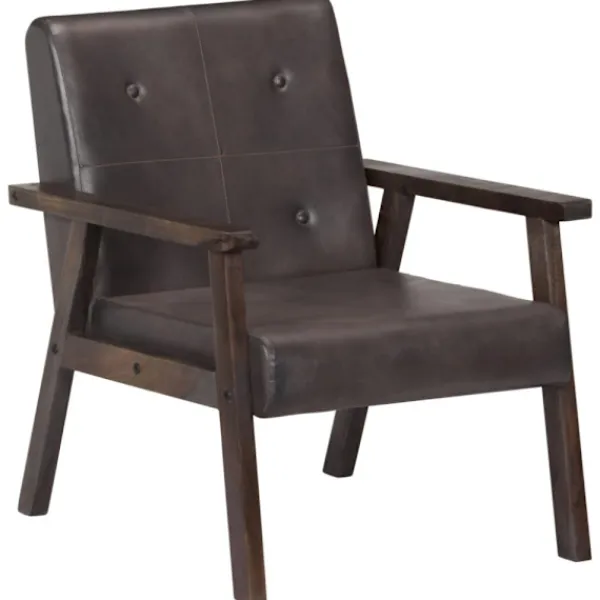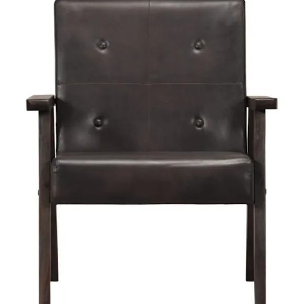 Fåtöljen är gjord av lättskött äkta läder med knappdekorationer, vilket ger inredningen en lyxig känsla. Dess tjockt stoppade sits och ryggstöd säkerställer optimal sittkomfort. Ramen i massivt akaciaträ förstärker dessutom fåtöljens stabilitet och hållbarhet. Det är den perfekta platsen att se en film, läsa en bok eller bara slappa! Denna fåtölj är lätt att montera.