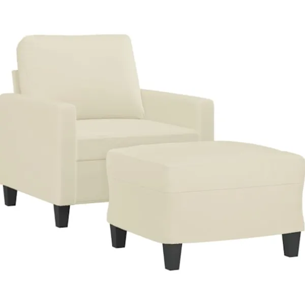 Den här fåtöljen med fotpall är ett perfekt val för att läsa, titta på tv eller bara koppla av. Soffan blir en vacker detalj i ditt hem. Hållbart konstläder: Premium konstläder är ett högst slitstarkt material. Den är fläckbeständig, vilket gör den enkel att rengöra med en fuktig trasa. Den släta ytan har också ett lyxigt utseende.Robust och stabil ram: Soffans plywood- och metallram med fotpall garanterar stabilitet.Bekväm sittupplevelse: Fåtöljen är mycket bekväm med det tjockt vadderade sätet, armstöden och ryggkudden.Flexibel fotpall: Denna pall är lämplig för att vila fötterna när du sitter i soffan eller vilstolen, dessutom får du en extra sittplats. Den enkla designen och det kompakta måttet gör den till en perfekt sittplats var som i din bostad.Iögonfallande design: Med dess enkla och moderna design blir fåtöljen ett blickfång i ditt rum.